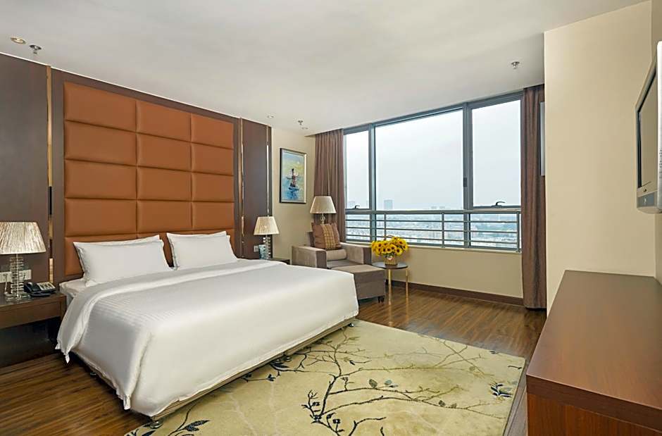 The spacious suite has 1 bedroom and 1 bathroom with a bath and free toiletries. The suite features parquet floors, a seating area with a flat-screen TV with cable channels, air conditioning, a mini-bar, as well as a wardrobe. The unit has 1 bed.
