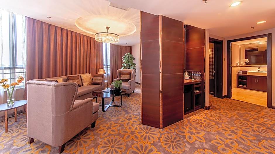 The spacious suite has 1 bedroom and 1 bathroom with a bath and free toiletries. The suite features parquet floors, a seating area with a flat-screen TV with cable channels, air conditioning, a mini-bar, as well as a wardrobe. The unit has 1 bed.
